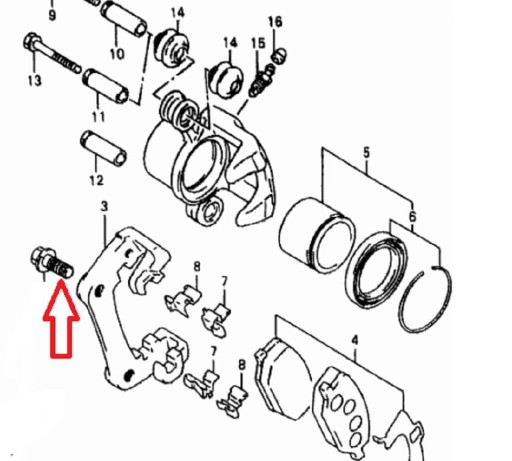 Śruba zacisku hamulcowego, jarzmo Suzuki