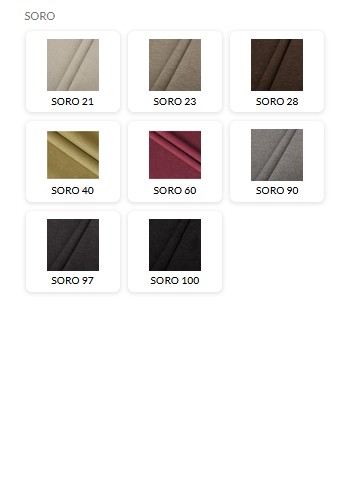 SORO to piękna tkanina tapicerska do uniwersalnych zastosowań. Soro wyróżnia się bardzo ciepłą, welurową strukturą, którą dopełnia pastelowa kolorystyka. Materiał jest gruby i solidnie wykonany, trudny do zaciągnięcia. Charakteryzuje się świetną odpornością na ścieranie.