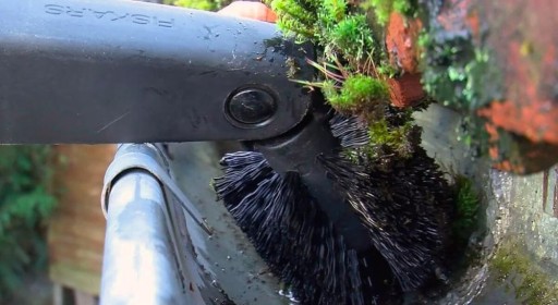 - Głowica, połączenie szczotki i skrobaka: szczotka do rynien dla łatwego usuwania liści, skrobak do usuwania bardziej uporczywych zabrudzeń,