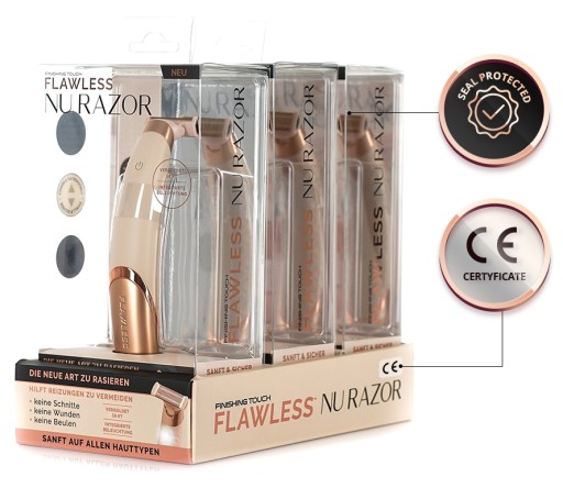 Każdy trymer Flawless Nu Razor posiada znak CE. Certyfikacja CE to proces oceny zgodności parametrów produktu z wymogami określonymi w unijnych dyrektywach.