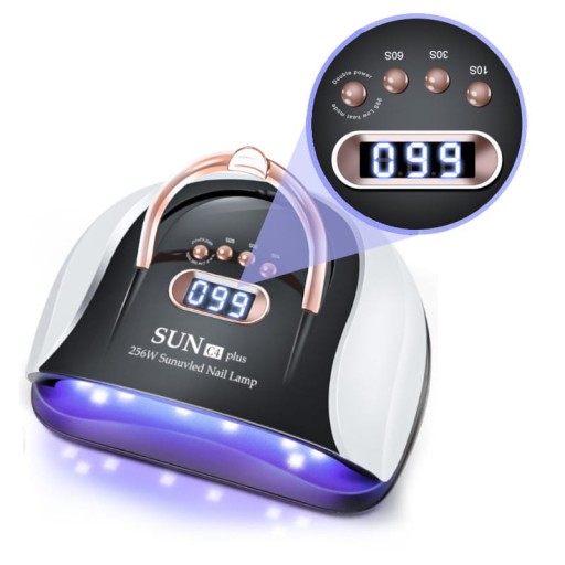 Lampa wyposażona jest w zewnętrzny wyświetlacz LCD emitujący czas naświetlania paznokci. Możesz skorzystać z timera ustawiając pracę lampy: 10s, 30s, 60s, 99s. Gdy zegar skończy odliczanie lampa automatycznie wyłączy się. Lampa uruchamia się również automatycznie po włożeniu do niej dłoni. Nie musisz korzystać z czasowych włączników.
