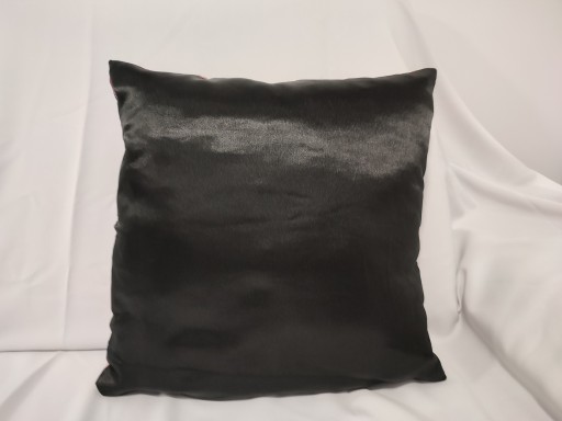 Czarny materiał na tyle poduszki idealnie dopasowuje się do każdego rodzaju nadruku i może sam w sobie stanowić ozdobę.