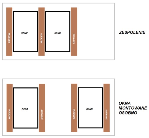 Jeśli twoje okna będą montowane w zespoleniu, czyli obok siebie musisz zamówić specjalny kołnierz do zespoleń poziomych. Podczas zamawiania ważne jest, żeby podać szerokość krokwi, która znajduje się pomiędzy oknami.