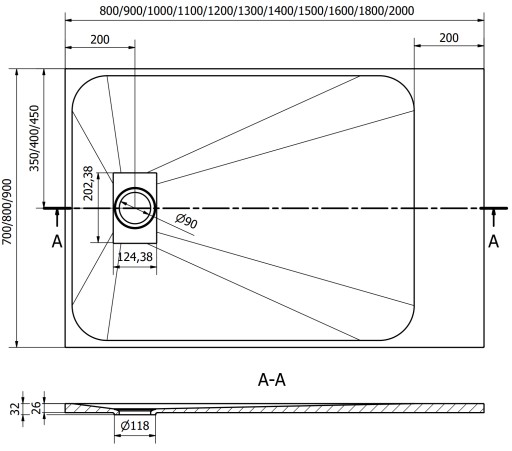 - Średnica odpływu: 90 mm