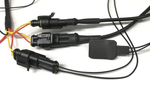 W zestawie : Manetki, sterownik, okablowanie z wtyczkami wodoszczelnymi, bezpiecznik , taśma Dwustronna , opaska termokurczliwa