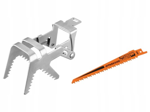 w zestawie: 1 brzeszczot do drewna, 1 pałąk podtrzymujący gałęzie, walizka