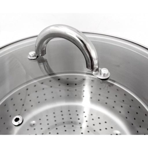 - Pokrywka wykonana jest z hartowanego szkła z otworem do wyprowadzenia nadmiaru pary.