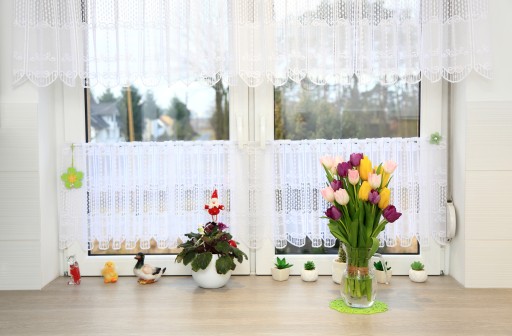 Karnisz montujemy na oknie (bez wiercenia) za pomocą specjalnych, przyklejanych uchwytów.