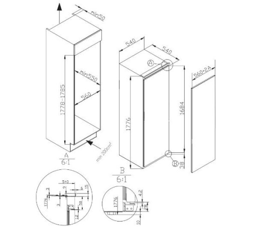 Drzwi lodówki nie są na stałe przytwierdzone do zabudowy meblowej dzięki czemu montaż i demontaż lodówki jest dużo łatwiejszy.