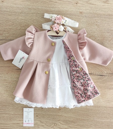 Płaszczyk do chrztu wykonany z flauszu z dodatkiem wełny w pięknych odcieniach idealnie pasuje do naszych kreacji.