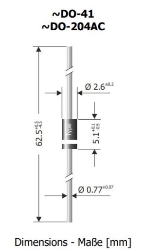 Одиночный диод 1кВ 1000В 1А DO-41 Diotec 1N4007