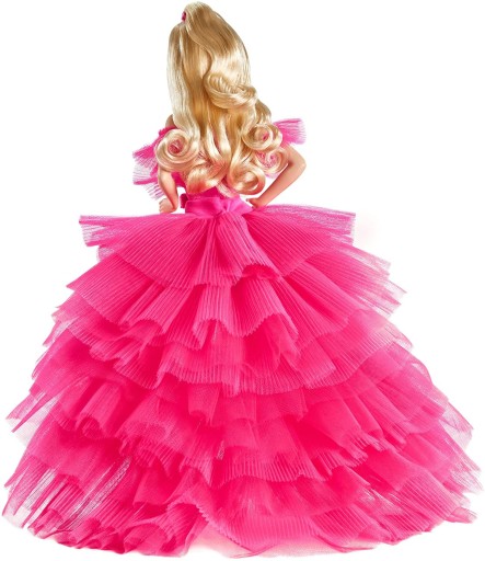 Lalki Barbie Pink świętują Barbie i są hołdem dla ich niepowtarzalnego koloru Pierwsza lalka z kolekcji ma korpus Silkstone i nosi suknię wieczorową z kokardkami bez ramiączek Długi hol z tiulu zapewnia dramatyczny wygląd Sandały, wysadzane kokardkami, eleganckie kolczyki i wysoki koński ogon dopełniają przepiękny wygląd Ta lalka Barbie Pink łączy klasyczny blask Barbie z dzisiejszymi trendami mody i jest wspaniałym prezentem dla kolekcjonerów. Zawiera: stojak, certyfikat autentyczności Dlaczego ten produkt ma "zmniejszone opakowanie"? Pracowaliśmy intensywnie nad tym, aby zmniejszyć ilość niepotrzebnego materiału i przestrzeni powietrznej w naszym długotrwałym opakowaniu, aby zminimalizować ilość odpadów i emisję