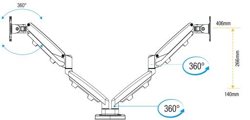 Ramię na 2 monitory z łatwą regulacją dzięki zastosowanej sprężynie gazowej