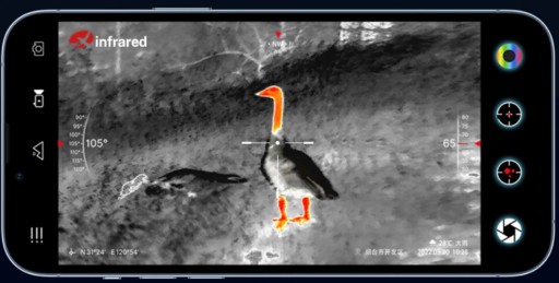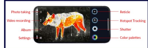 Taki sposób wykorzystania tej kamery termowizyjnej determinuje duża ogniskowa soczewki wynosząca 13mm, pole widzenia FOV 13.6 ° × 10.2 ° jak i dedykowana aplikacja Xinfrared z funkcją ZOOM, manualne korygowanym celownikiem, jak i orientacją w przestrzeni N-S-W-E
