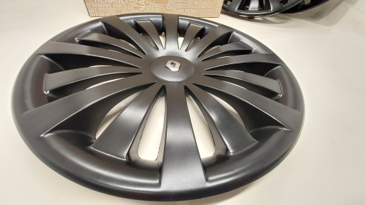 Zestaw kołpaków rozmiar 16" kolor czarny z srebrnym emblematem RENAULT. PRODUKT ORYGINALNY FIRMY RENAULT