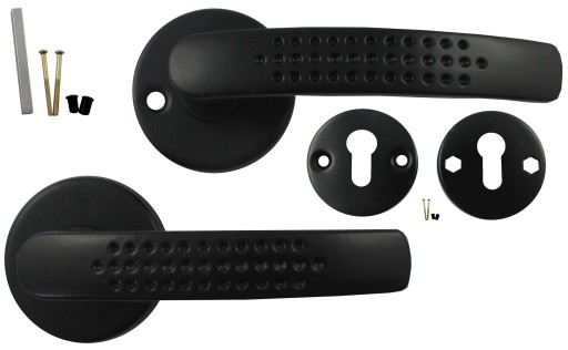 - klamka z okrągłym szyldem (na obie strony drzwi)