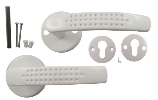 - klamka z okrągłym szyldem (na obie strony drzwi)