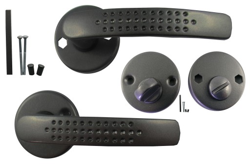 KLAMKA SANDRA SZARA GRAFIT OKRĄGŁY ROZETA WC Marka AA Met