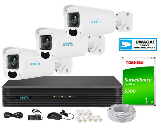 Zestaw do monitoringu IP - 3 kamery 4Mpx Motozoom - Uniarch