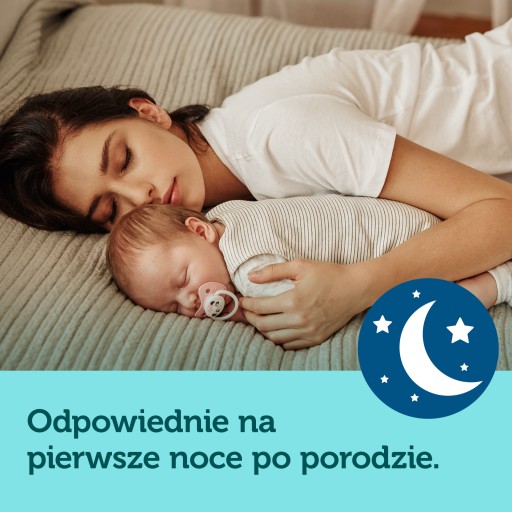 Wysokochłonne podkłady poporodowe na noc ULTRA DRY przeznaczone dla kobiet w okresie połogu, doskonale sprawdzą się podczas pierwszych nocy po porodzie. Zostały stworzone z myślą o jeszcze wyższym komforcie i ultraskutecznej ochronie przed przeciekaniem w pozycji leżącej. Szeroki, profilowany kształt zapewnia komfort użytkowania, a wysokochłonny wkład wyjątkowo szybko pochłania płyny i zatrzymuje wilgoć wewnątrz podkładu, zapewniając długotrwałe uczucie suchości. Wewnętrzna warstwa podkładów jest miękka i przyjemna w dotyku, nie rozwarstwia się i nie przylega do skóry, a szeroki pasek samoprzylepny utrzymuje podkład we właściwym miejscu.