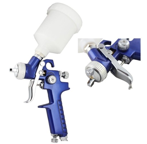 Pistolet lakierniczy posiada górny zbiornik o pojemności 600ml oraz dyszę o rozmiarze 1,4 mm.