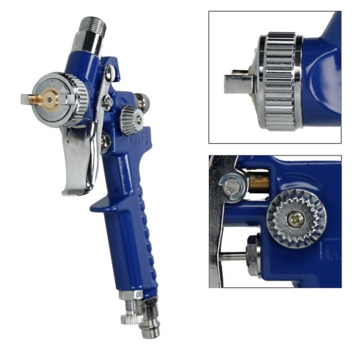 Pistolet reguluje ilości powietrza, farby oraz strumienia (okrągły lub płaski).