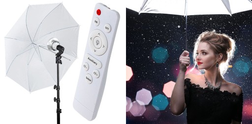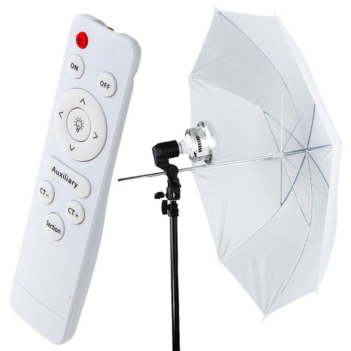 Zestaw zajmuje niewiele miejsca dając przy tym dużą moc światła. Pilot dołączony do zestawu pozwala płynnie sterować żarówką, zwiększając i zmniejszając moc światła. To wspaniałe ułatwienie pracy. Unikniesz ciągłego podchodzenia do lampy i przemieszczania jej w celu uzyskania odpowiedniego natężenia światła. Sterując pilotem płynnie zmienisz również barwę światłą. Montaż oprawy, żarówki oraz parasolki na statywie jest bardzo prosty. Czas montażu jest błyskawiczny.