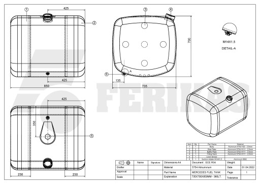 Nasze zbiorniki są wykonane z greckiego aluminium o grubości 2,5 mm, powlekanego z obu stron polimerem – tym samym materiałem, który jest stosowany w oryginalnym wyposażeniu zbiorników paliwowych i hydraulicznych.