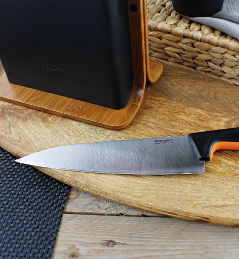 ⭐ZESTAW X5 NOŻY KUCHENNYCH W BLOKU BAMBUSOWYM FISKAR FUNCTIONAL FORM STAL⭐