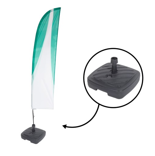 Beach Flaga reklamowa typu WINDER z masztem o długości 290cm oraz podstawą wodną + prosty projekt graficzny GRATIS.
