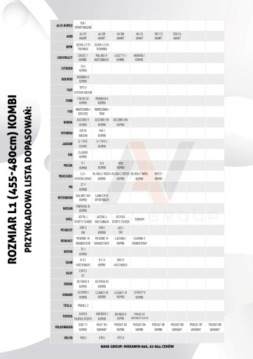 - Szeroka gama rozmiarów która uwzględnia różne rodzaje nadwozia oraz długości auta