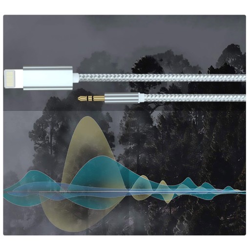 KABEL PRZEJŚCIÓWKA IPHONE do AUX JACK AUDIO SREBRO