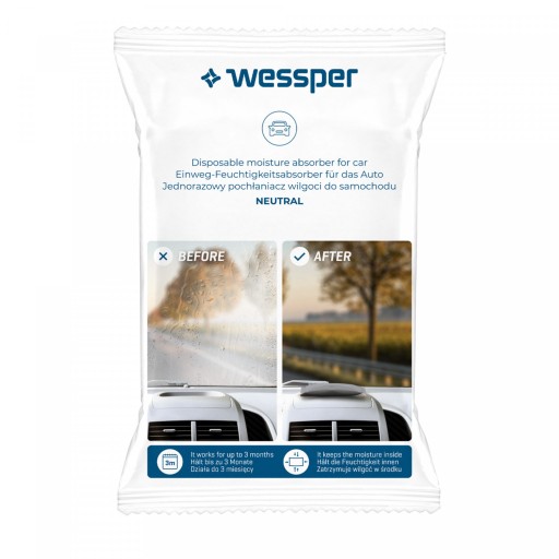 Pochłaniacz wilgoci Wessper AquaDryer On - Off gwarantuje szybkie usunięcie wilgoci z samochodu, niewielkich pomieszczeń gospodarczych lub zawilgoconych przedmiotów.