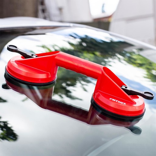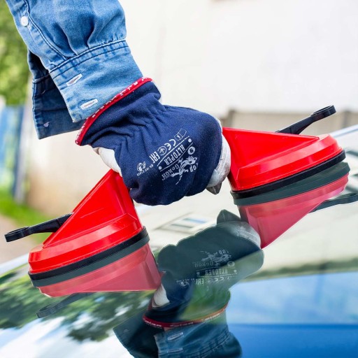 Wysokiej jakości podwójny uchwyt/przyssawka przeznaczona do przenoszenie elementów o płaskiej i gładkiej powierzchni takich jak np. szyby, okna, szyby samochodowe, arkusze blach, laminaty itp., których waga nie przekracza 80kg.