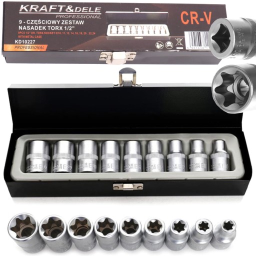 Profesjonalny zestaw nasadek E-TORX od KRAFT&DELE dla mechaników i majsterkowiczów. Zestaw 9 nasadek pozwoli na skuteczne naprawy wielu rodzajów elementów.