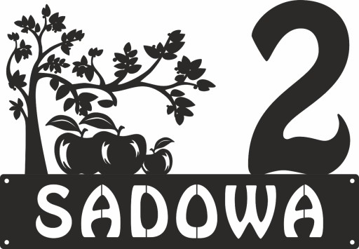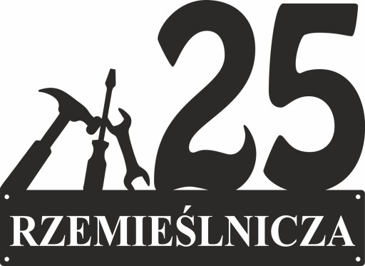 Numer na dom. Stalowa tablica adresowa z grafiką.