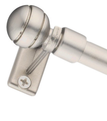 - 1 x rozsuwany metalowy pręt mini karnisza zwieńczony końcówkami w kulistym kształcie z ozdobnym ryflowaniem w dwóch miejscach