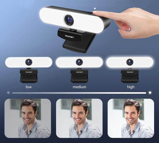 Ta kamera komputerowa obsługuje 3 poziomy ręcznej regulacji światła. Dotykając przełącznik, możesz sterować jasnością światła, tak aby w warunkach słabego oświetlenia nadal było wyraźne i jasne, pokazując doskonały efekt ekspozycji, bez dodatkowego oświetlenia.