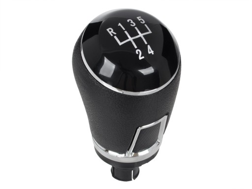 Schemat: 5 biegów + R, nakładka w kolorze czarnym z chromowym pierścieniem i białym schematem