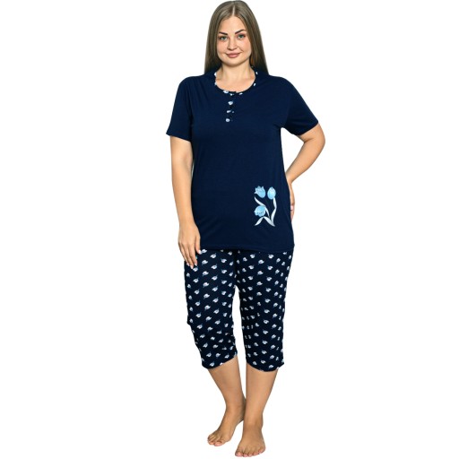 BAWEŁNIANA PIŻAMA DAMSKA DUŻE ROZMIARY KRÓTKI RĘKAW, SPODNIE 3/4