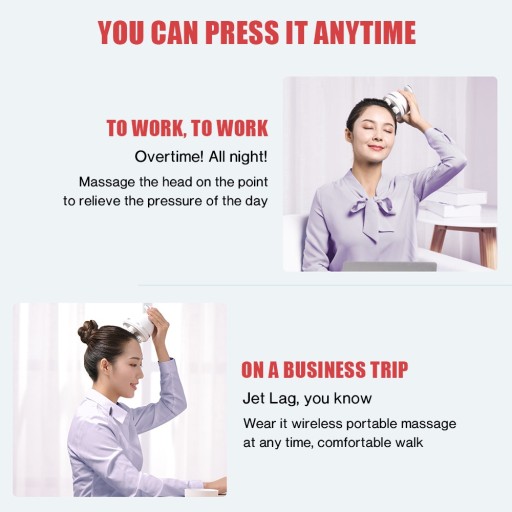 Kompaktowa i bezprzewodowa konstrukcja sprawia, że urządzenie do masażu głowy nadaje się do zastosowań w domu, podczas podróży na urlopie, a także podczas przerw w pracy czy w biurze.