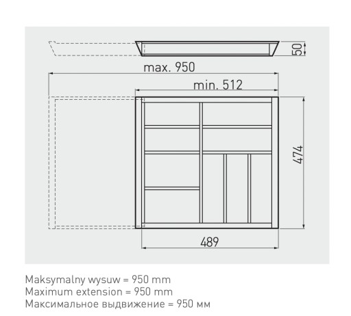 - wkład szufladowy dedykowany do szuflad o głębokości 500mm,