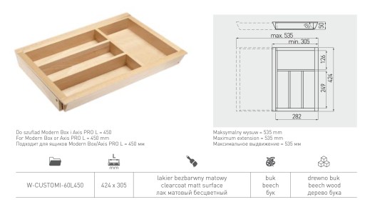 - wkład szufladowy dedykowany do szuflad o głębokości 450mm,