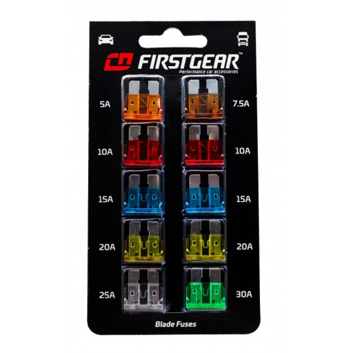 - Zawartość zestawu: 5A, 7.5A, 2x10A, 2x15A, 2x20A, 25A, 30A