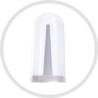 Delikatna szczoteczka z wypustkami nakładana na palec idealnie nadaje się do mycia pierwszych ząbków.