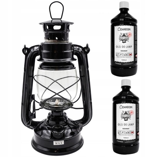 - W zestawie: lampa czarna, 2 x olej do lamp 1000ml, zapasowy knot do lamp 5szt.