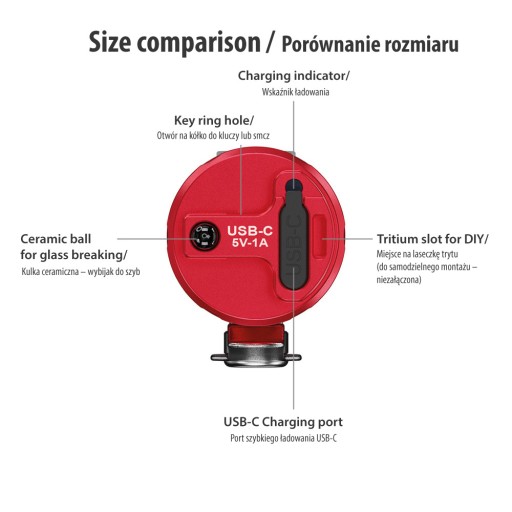 Szczegółowo o uruchamianiu poszczególnych funkcjonalności można przeczytać w zakładce "Tryby pracy". Kompaktowy rozmiar latarki