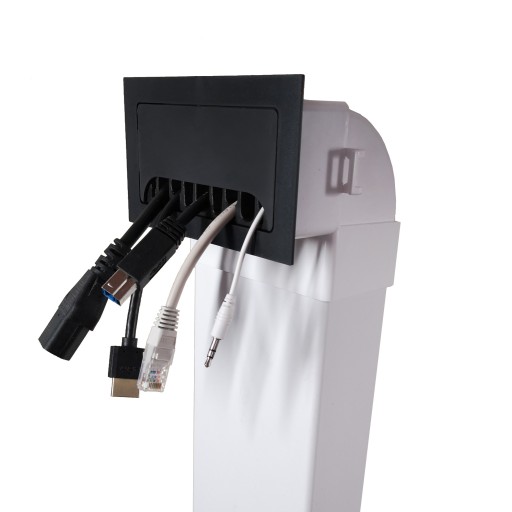 - Otwierana klapka pozwala na łatwe przełożenie grubych wtyczek.