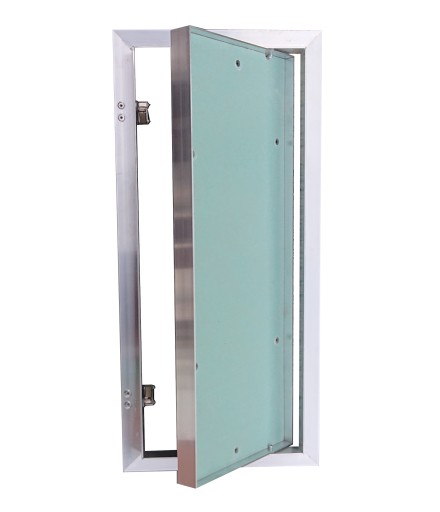 Drzwi rewizyjne CERAMIKO wykonane są z profili aluminiowych, które są spawane do ramy zewnętrznej i wewnętrznej. Cały zespół jest połączony za pomocą stałego zawiasu, co umożliwia otwarcie skrzydła drzwiowego w razie potrzeby. W wersji standardowej model ten produkowany jest z wodoodporną płytą w kolorze zielonym, mocowaną do ramy wewnętrznej za pomocą kleju o dużej wytrzymałości, co gwarantuje szybką i łatwą obróbkę powierzchni.