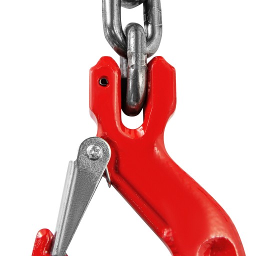Zawiesie łańcuchowe 4-cięgnowe z ogniwem zbiorczym wraz z hakami skracającymi zakończone hakami z zapadką DOR: 4,25T/4 250KG - do zawiesia dołączona jest szekla - DOR: 4,75 tony.